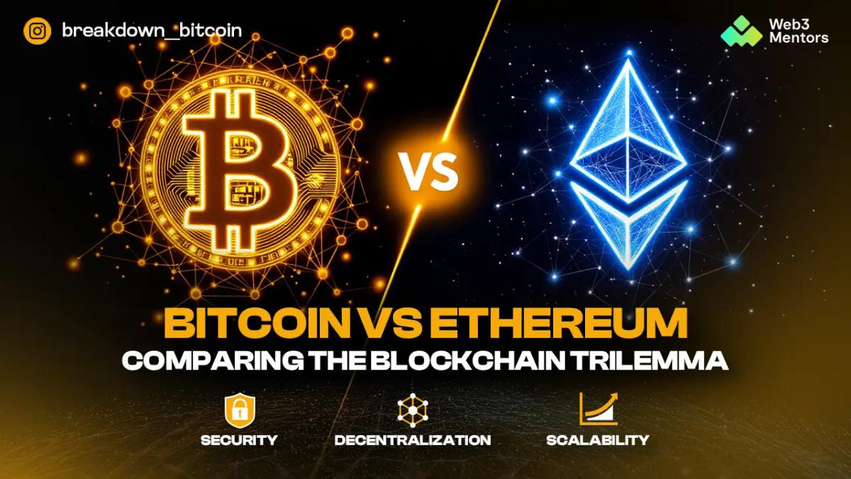 Bitcoin vs Ethereum is often framed as a competition, but that framing misses the point. These two networks are not trying to win the same game. They are optimizing for different priorities, and the differences become very clear when you look at the blockchain trilemma.